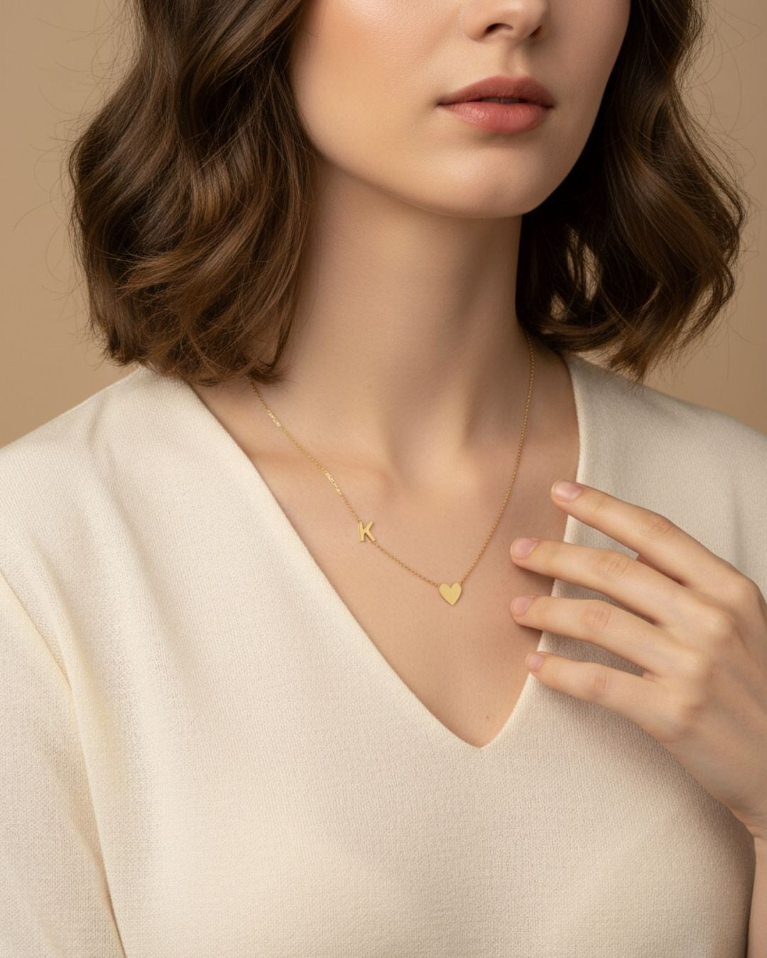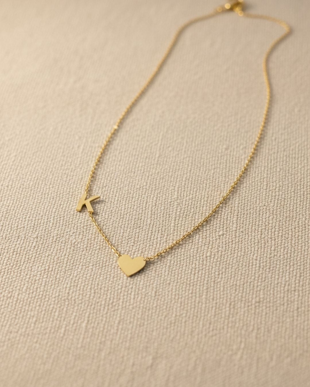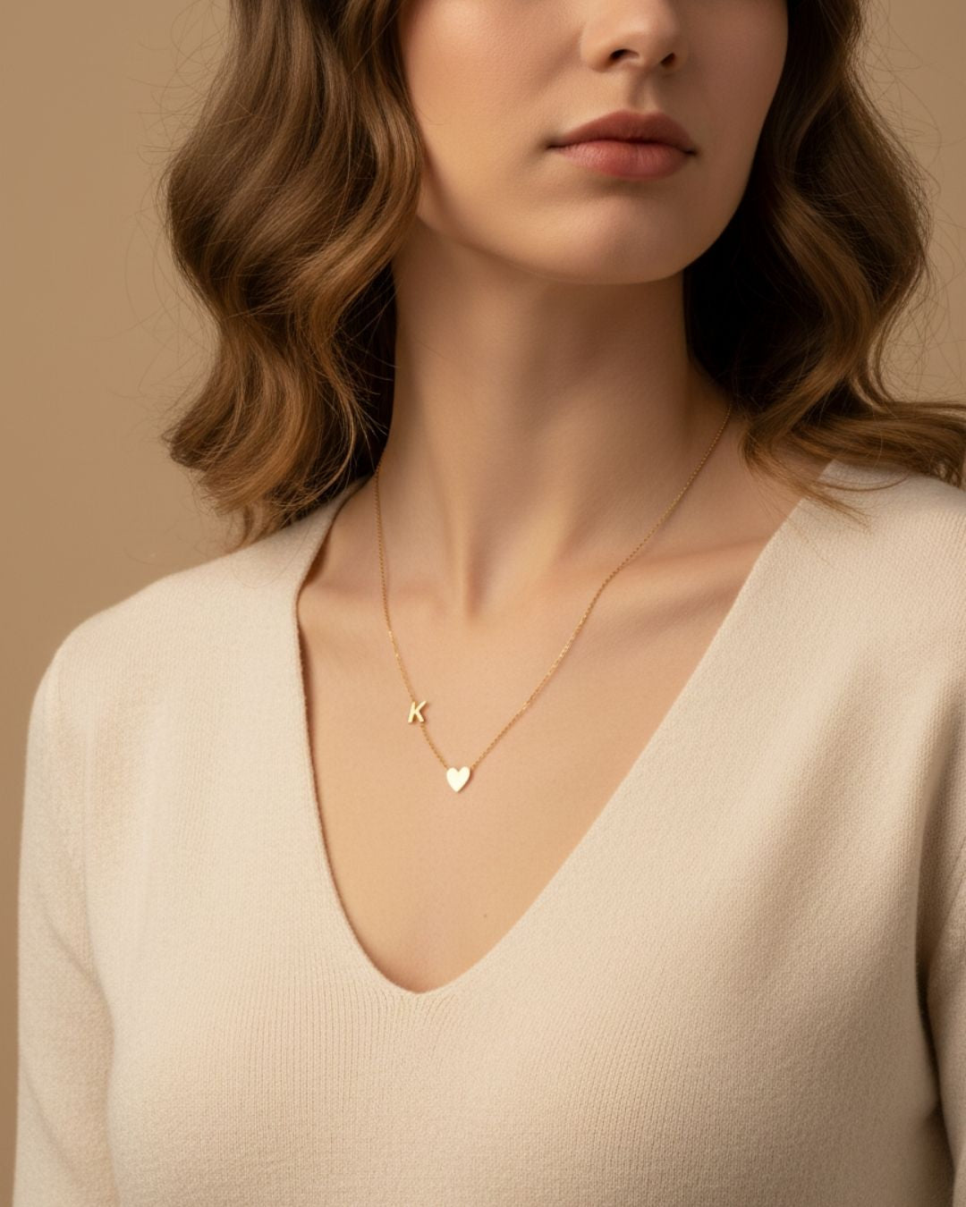 Modern tasarımı duygusal bir dokunuşla birleştiren bu özel kolye, klasik takılardan sıkılanlar için eşsiz bir seçenek! 925 ayar gümüş kalitesiyle üretilen bu tasarımda, minimal bir kalp sembolü ve seçtiğiniz harf asimetrik bir dengede buluşuyor.