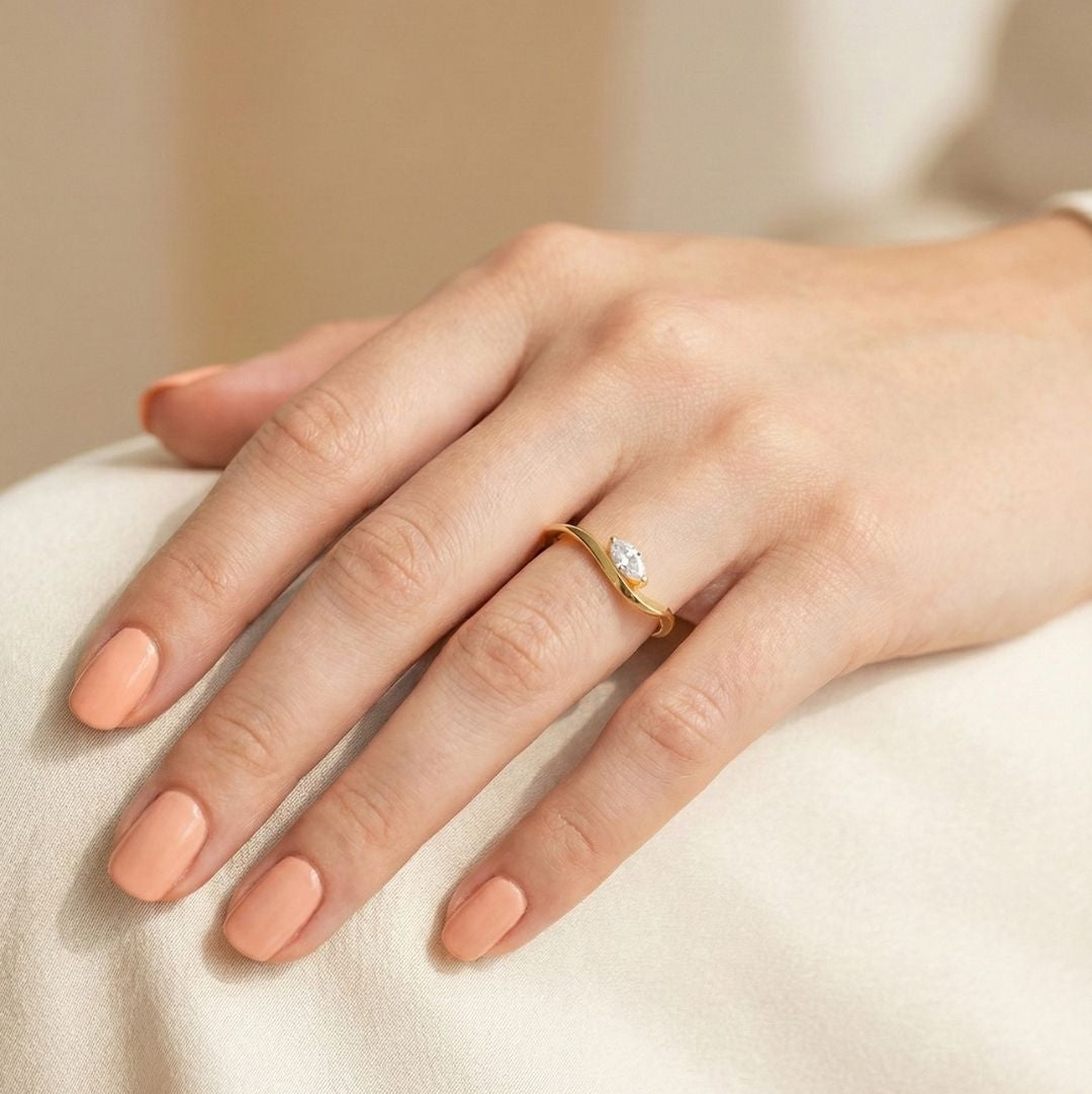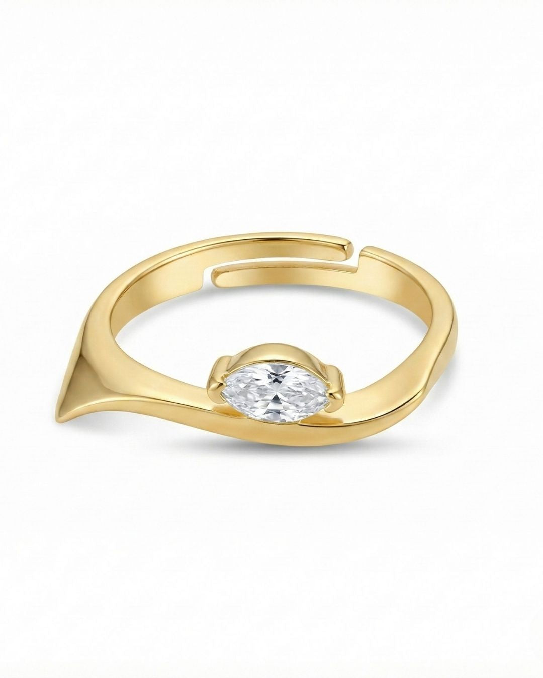 Modern tasarımın asil duruşla buluştuğu Ayarlanabilir Markiz Taşlı Yüzük, ışıltısıyla tüm bakışları üzerinize çekecek. Asimetrik dalga formu ve ortasındaki kusursuz markiz kesim taşıyla, sıradan yüzüklerden çok daha fazlası.