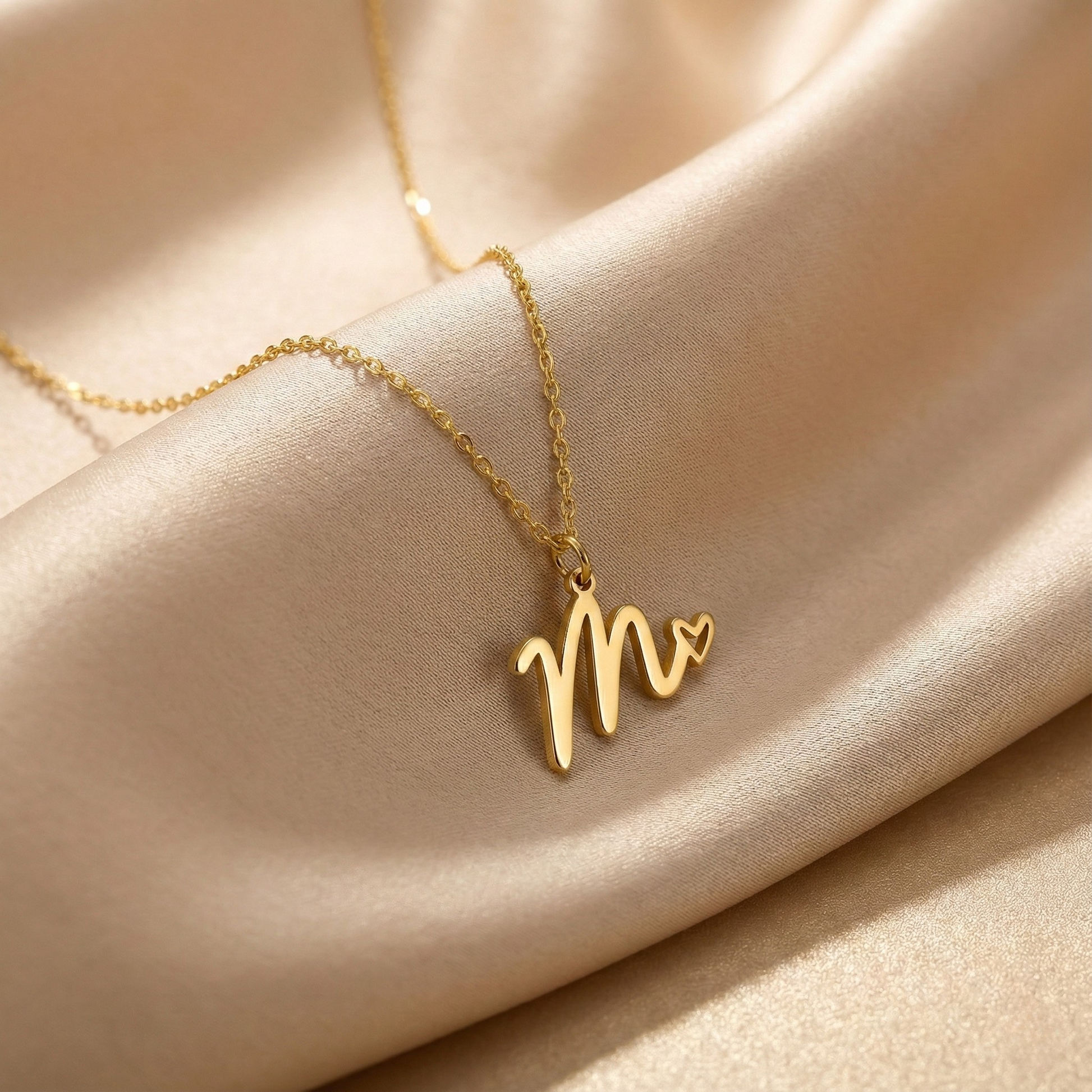 Adeta bir aşk mektubundan süzülmüş gibi... İsminizin baş harfini, el yazısının o akışkan ve zarif estetiğiyle boynunuzda taşıyın. 925 ayar gümüş kullanılarak usta işçilikle hazırlanan bu kolye, harfin kıvrımlı bitişine eklenen minik kalp detayıyla romantik bir "imza" niteliğinde.