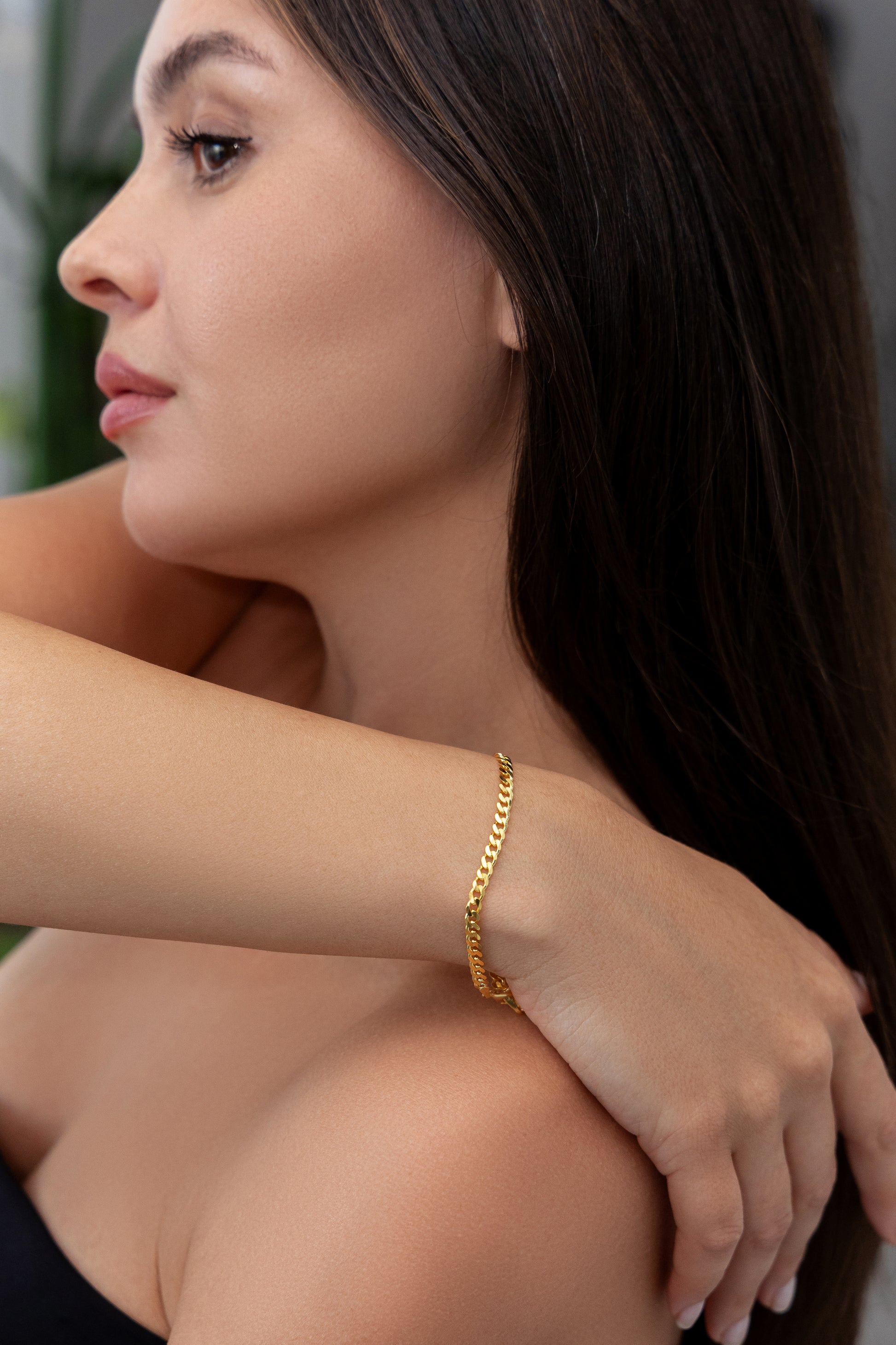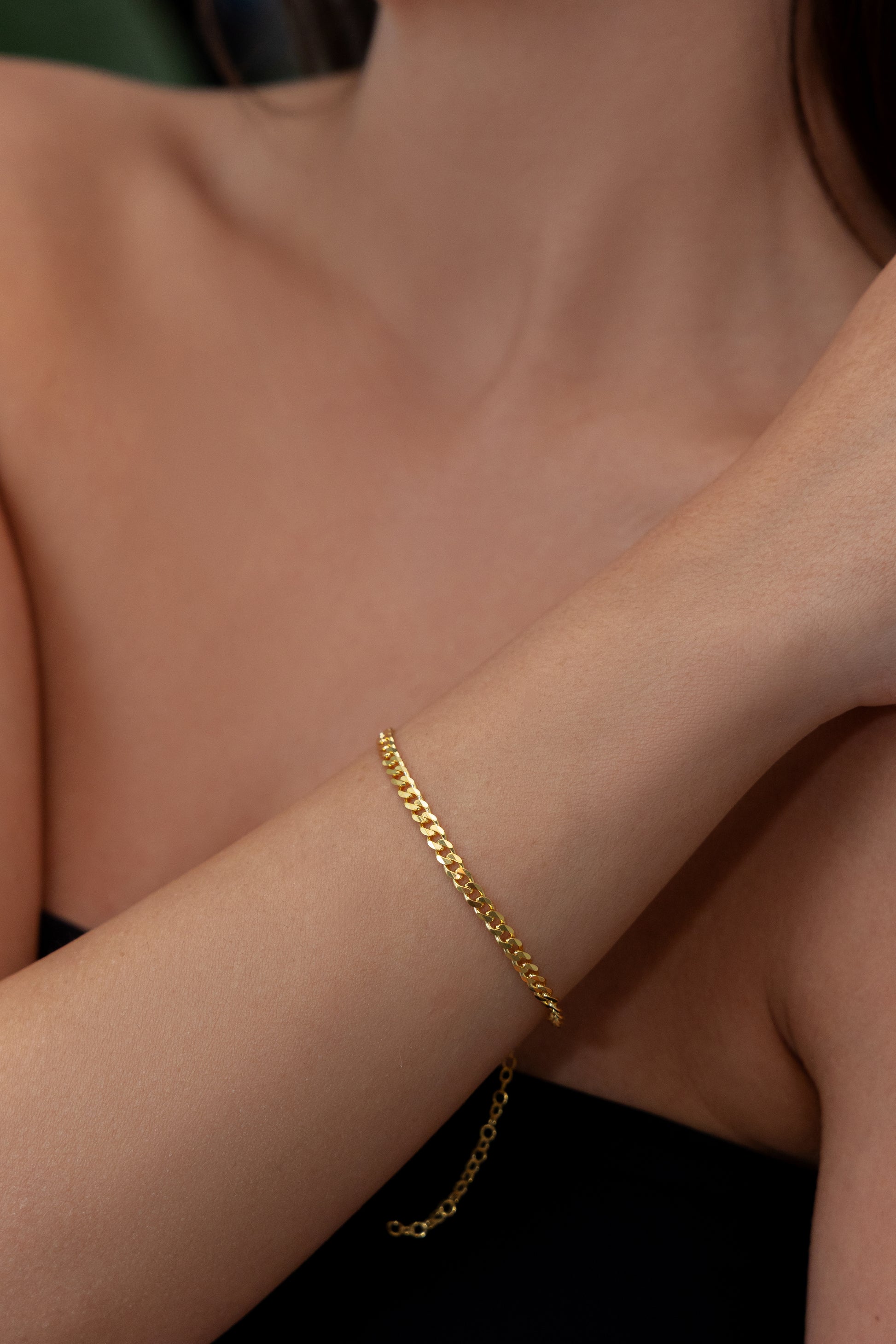 Zamansız ve minimalist tasarımıyla öne çıkan bu gurmet zincir bileklik, tek başına ya da diğer bilekliklerle kombinlenerek kullanılabilir. Hem günlük hem de özel gün kombinlerinize şıklık katar.